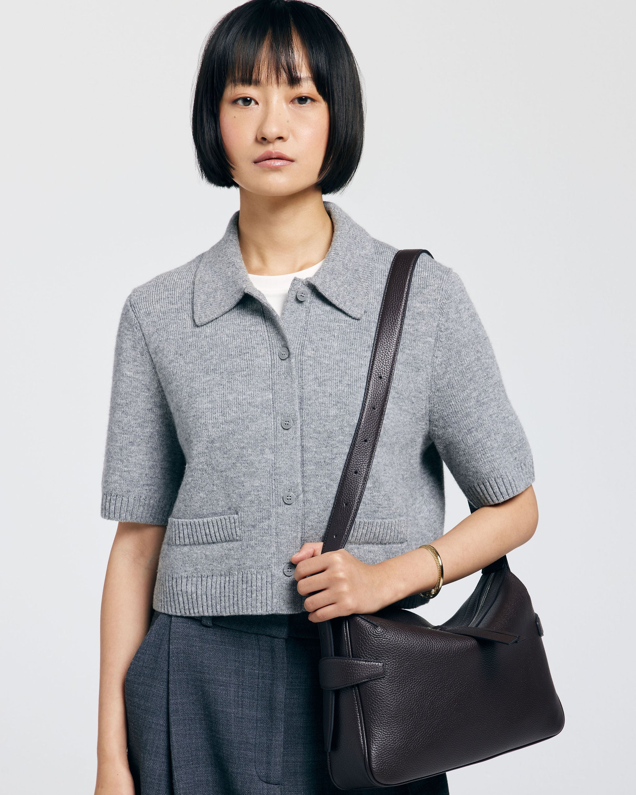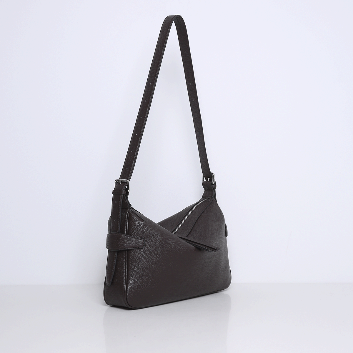 Een compacte schoudertas met een zachte, moderne vorm en een nonchalante valling. Het slanke silhouet ligt mooi tegen het lichaam en maakt de tas geschikt voor elke dag.