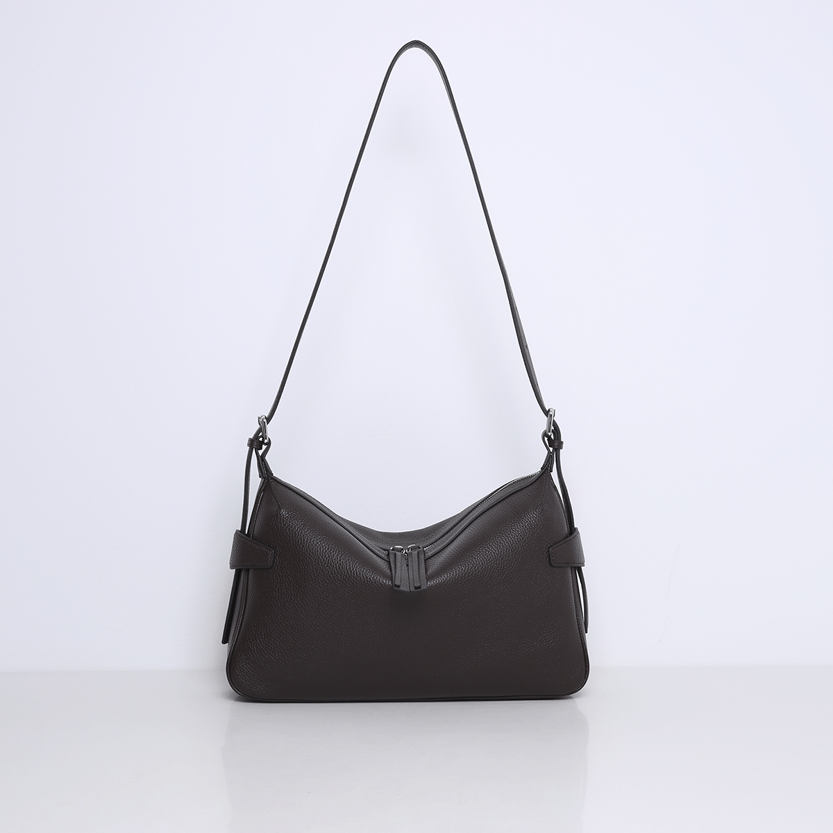 Gemaakt van soepel, hoogwaardig leer met een fijne structuur. Minimalistisch afgewerkt met subtiele details en stevige hardware, tijdloos, praktisch en ontworpen om lang mee te gaan.