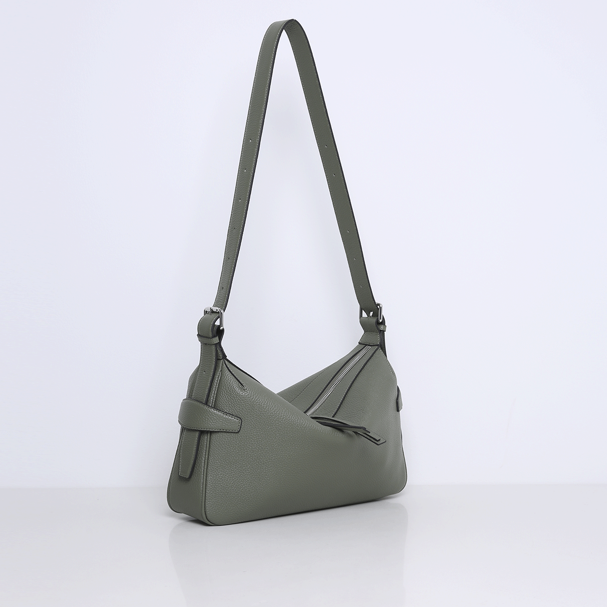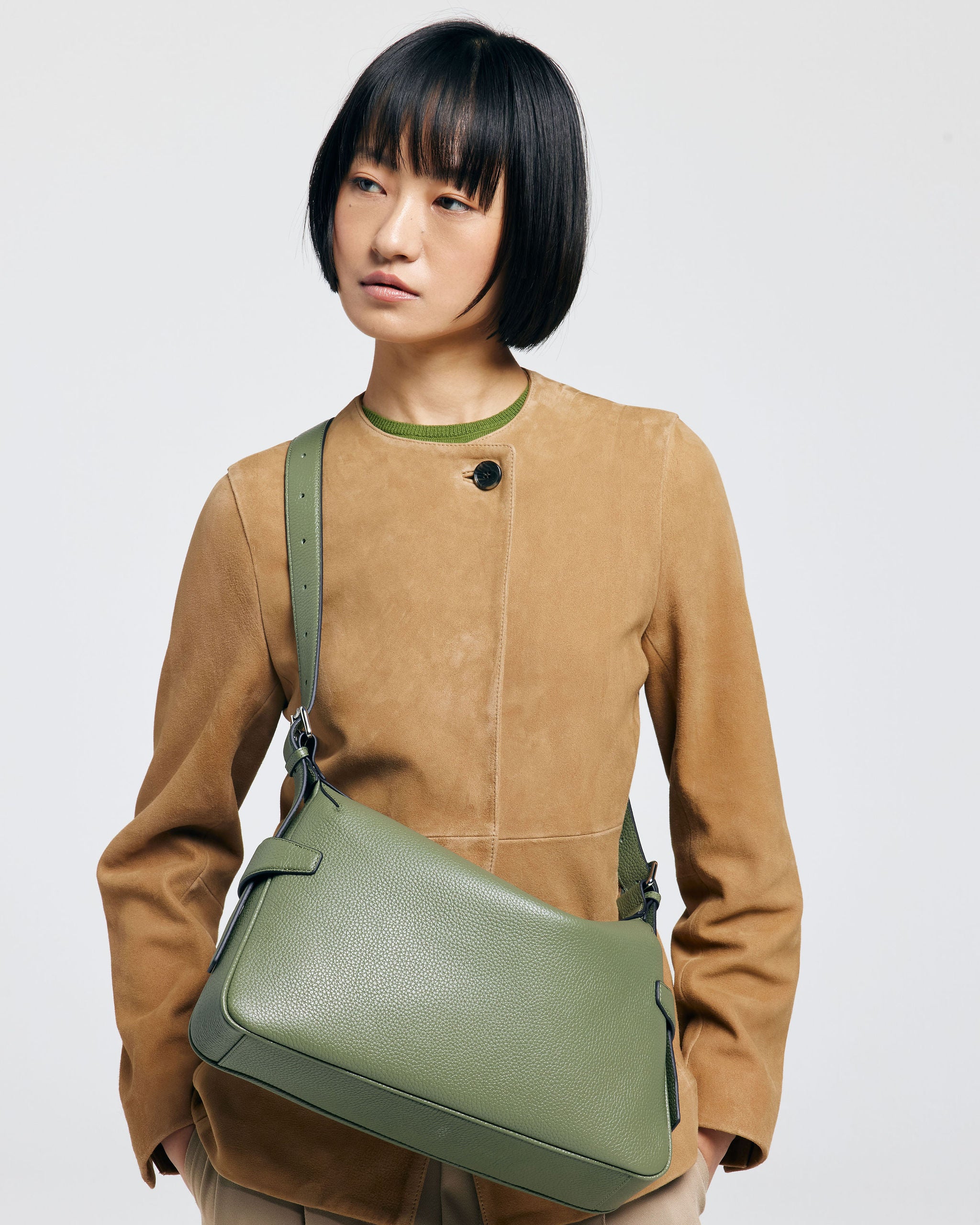 Een compacte schoudertas met een zachte, moderne vorm en een nonchalante valling. Het slanke silhouet ligt mooi tegen het lichaam en maakt de tas geschikt voor elke dag.