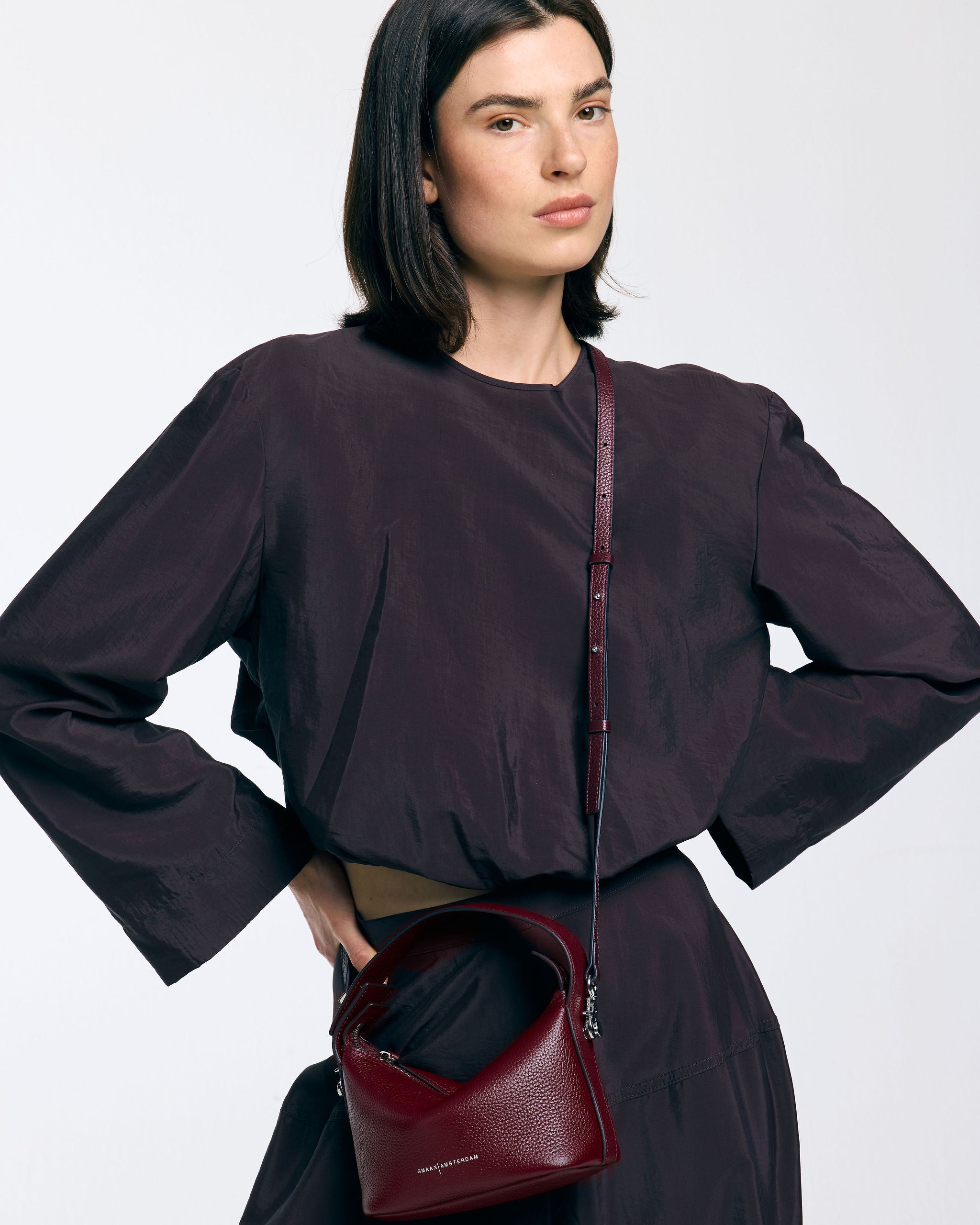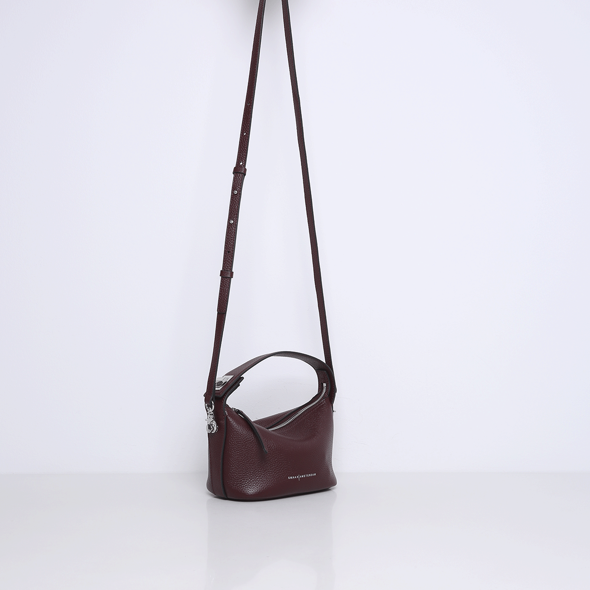 De tas is gemaakt van zacht en soepel rundleer. Heeft geen extra binnenvak en is gevoerd met suedine (viscose) materiaal. Met de afneembare, verstelbare schouderband kun je deze handtas ook als crossbody tas dragen.