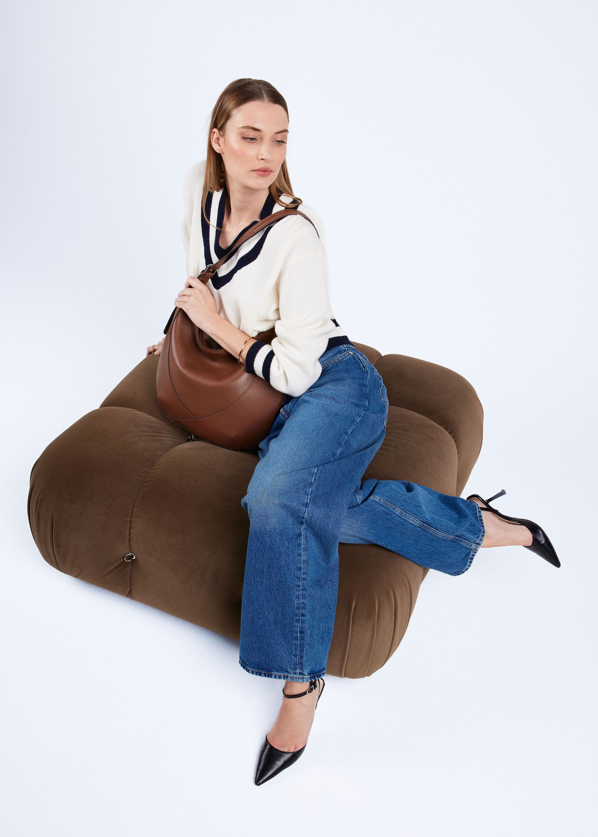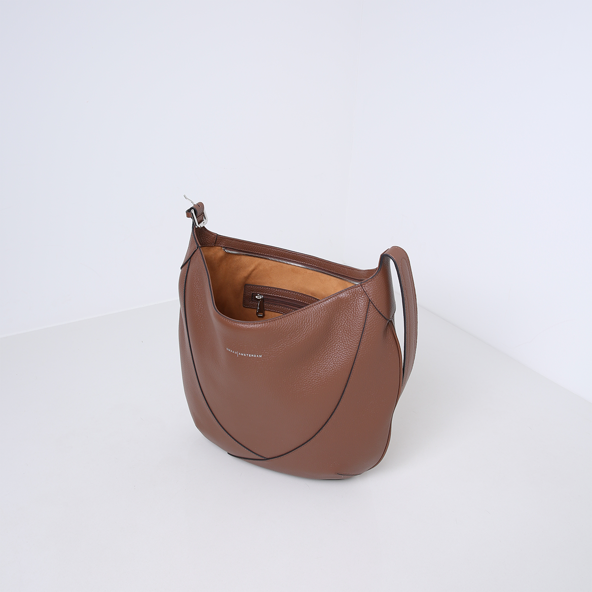 De DREW leren shopper combineert moeiteloos stijl met functionaliteit. Het middelgrote formaat biedt voldoende ruimte voor je dagelijkse essentials, terwijl het unieke ontwerp met een halve ronde vorm en geometrische lijnen zowel de voor- als achterkant een eigentijdse, grafische uitstraling geeft.