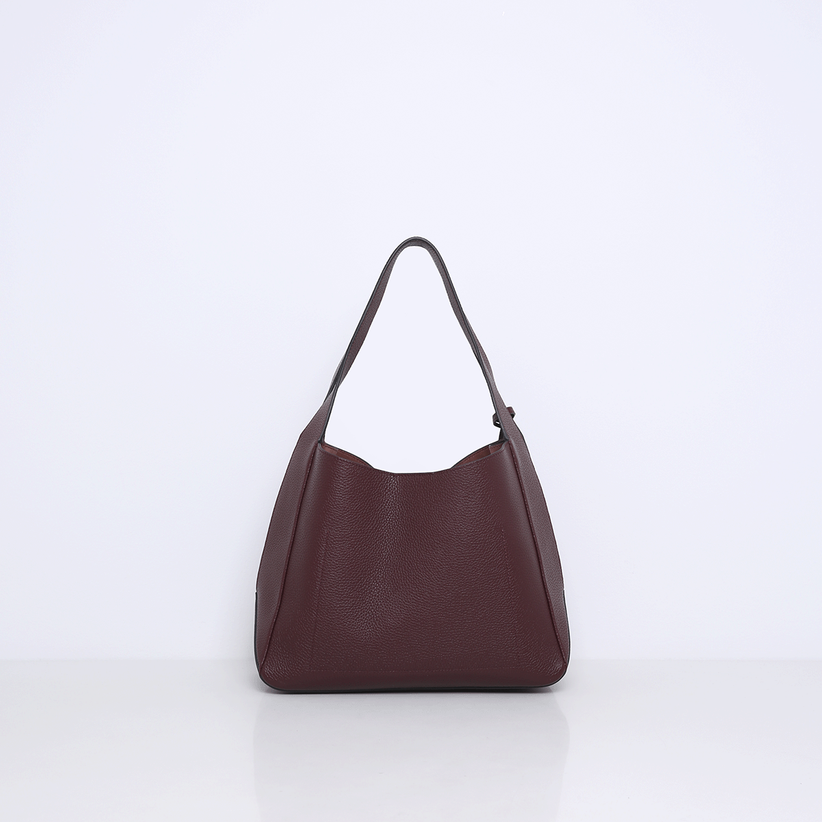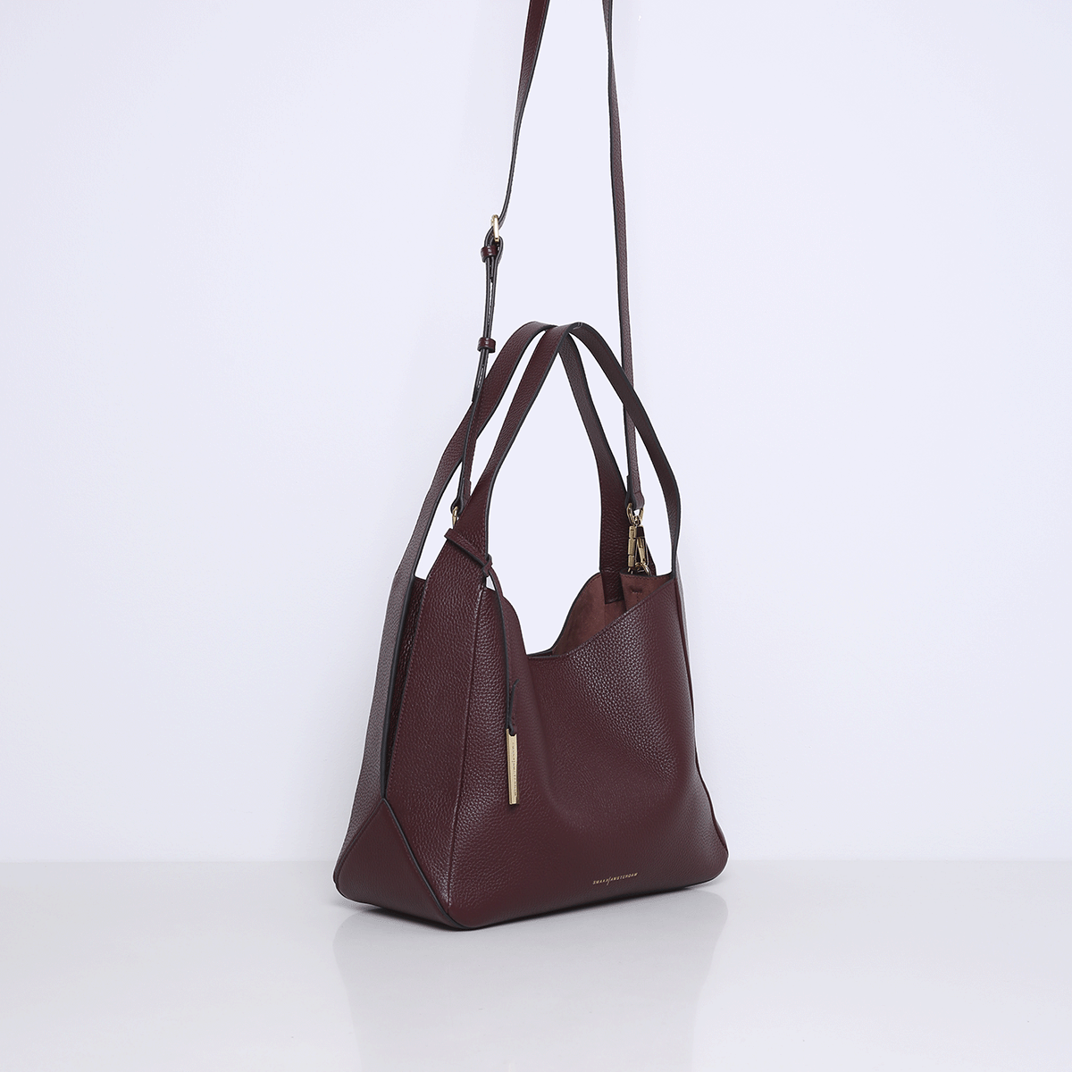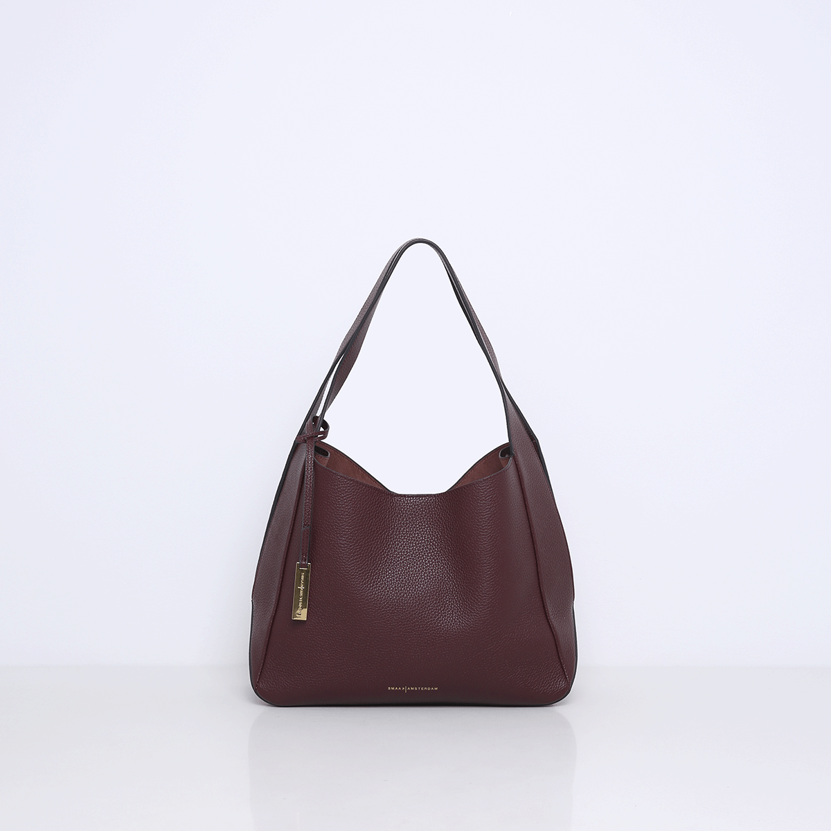 De handtas heeft twee stevige leren hengsels die naadloos overgaan aan de zijkanten van de tas en daar eindigen in een stijlvolle split. Deze splits voegen niet alleen een verfijnd detail toe, maar zorgen ook voor extra flexibiliteit en comfort bij het dragen. Dit grote model is perfect voor dagelijks gebruik, met voldoende ruimte voor al je essentiële spullen inclusief een 13 Inch laptop zonder hoes. De tas kan zowel in de hand als crossbody gedragen worden dankzij een afneembare en verstelbare schouderriem.
