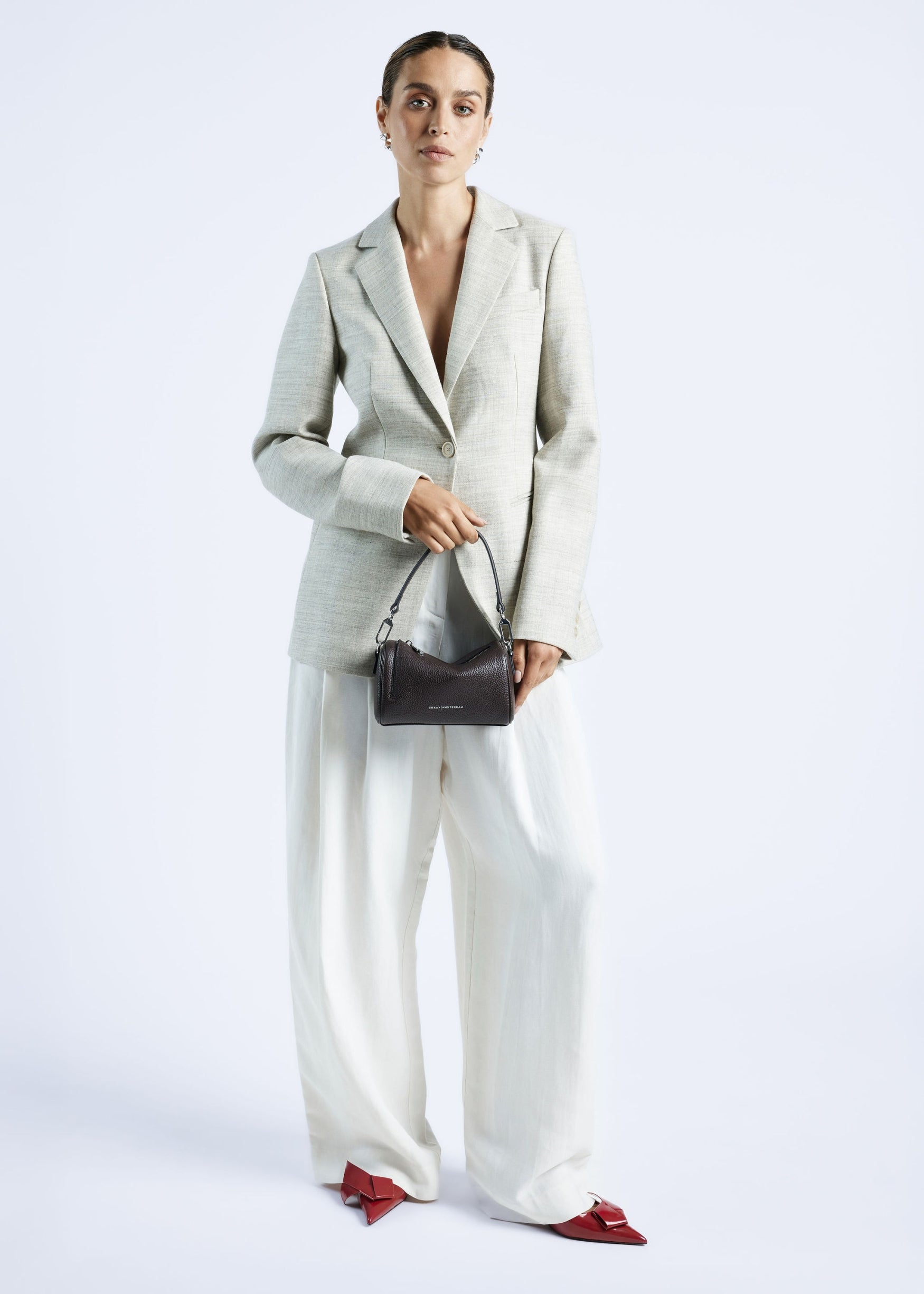 De FIGU is gesloten aan de bovenkant met rits en heeft een extra vouw aan de voorkant in het ontwerp voor een speels en eigentijds effect. Binnenin biedt de tas voldoende ruimte voor al je dagelijkse benodigdheden. Bevat geen binnenzakjes voor een ruimtelijk effect. De tas is gemaakt van zacht en soepel rundleer.