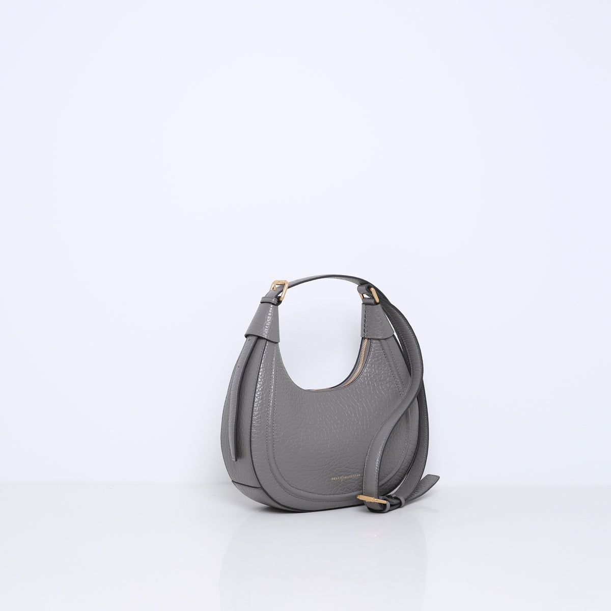De tas is gemaakt van stevig rundleer met een reliëfpatroon van olifantenhuid. De sluiting bevat een rits aan de bovenkant en heeft een unieke bevestiging om te lengte van de band te verstellen. Om de band aan te passen zul je het bijgevoegde stuk moeten bevestigen of loskoppelen aan de gesp van de tas. Beschikt over meerdere binnenvakjes en is gevoerd met suedine (viscose) materiaal.