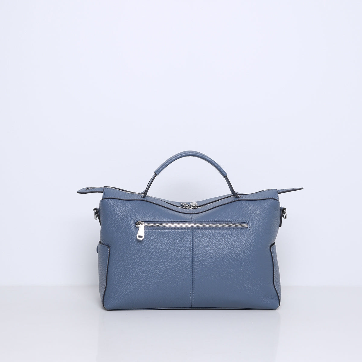 De tas is gemaakt van zacht soepel rundleer en is gesloten aan de bovenkant met rits.