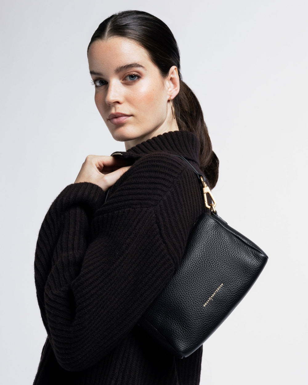 De JACK komt met een korte schouderriem waardoor de tas net onder de oksel valt. Met de afneembare leren schouderband kun je de schoudertas ook crossbody dragen. Beschikt over twee binnenvakjes en is gevoerd met suedine (viscose) materiaal. De tas is gemaakt van zacht en soepel rundleer.