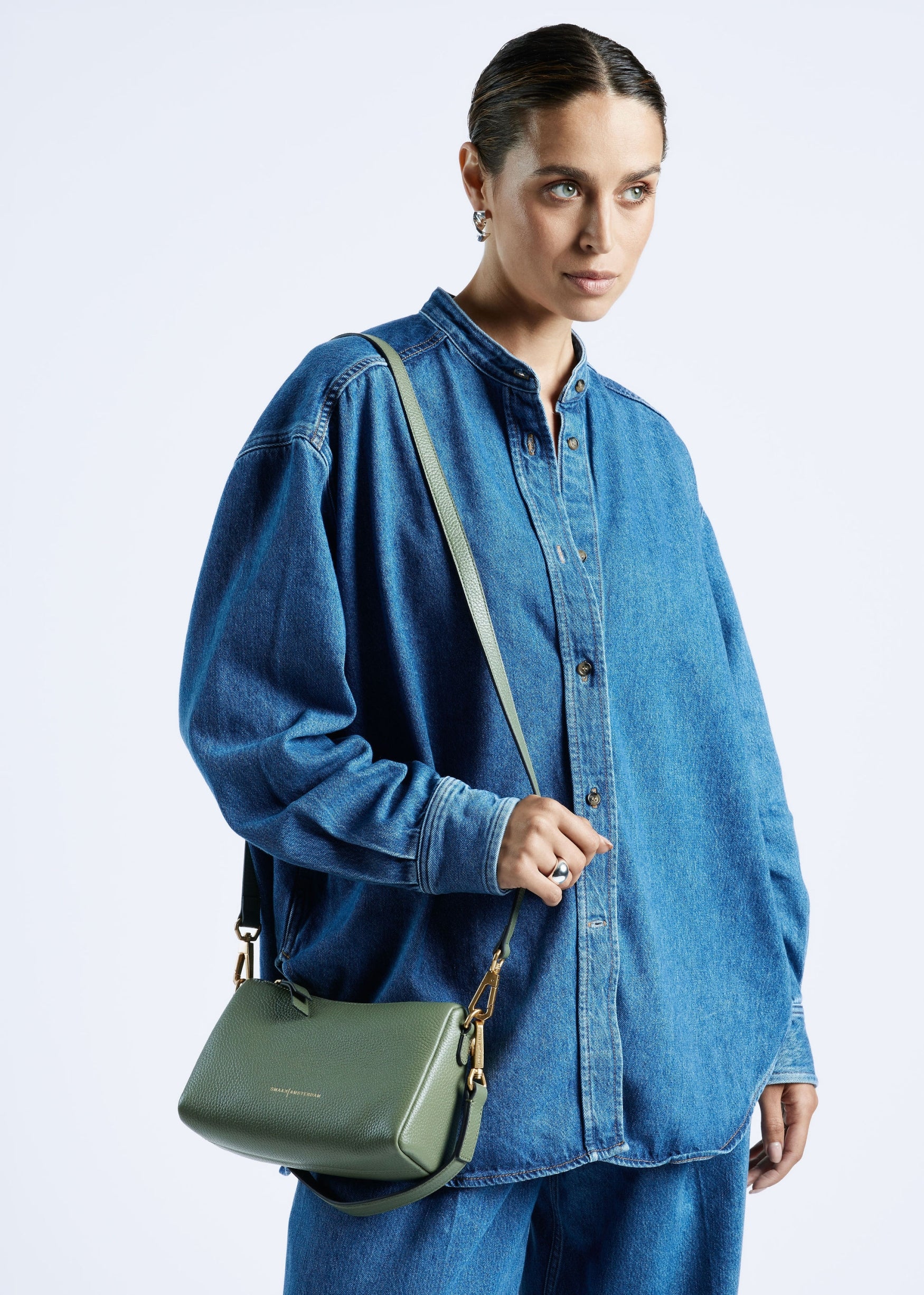 De JACK komt met een korte schouderriem waardoor de tas net onder de oksel valt. Met de afneembare leren schouderband kun je de schoudertas ook crossbody dragen. Beschikt over twee binnenvakjes en is gevoerd met suedine (viscose) materiaal. De tas is gemaakt van zacht en soepel rundleer.