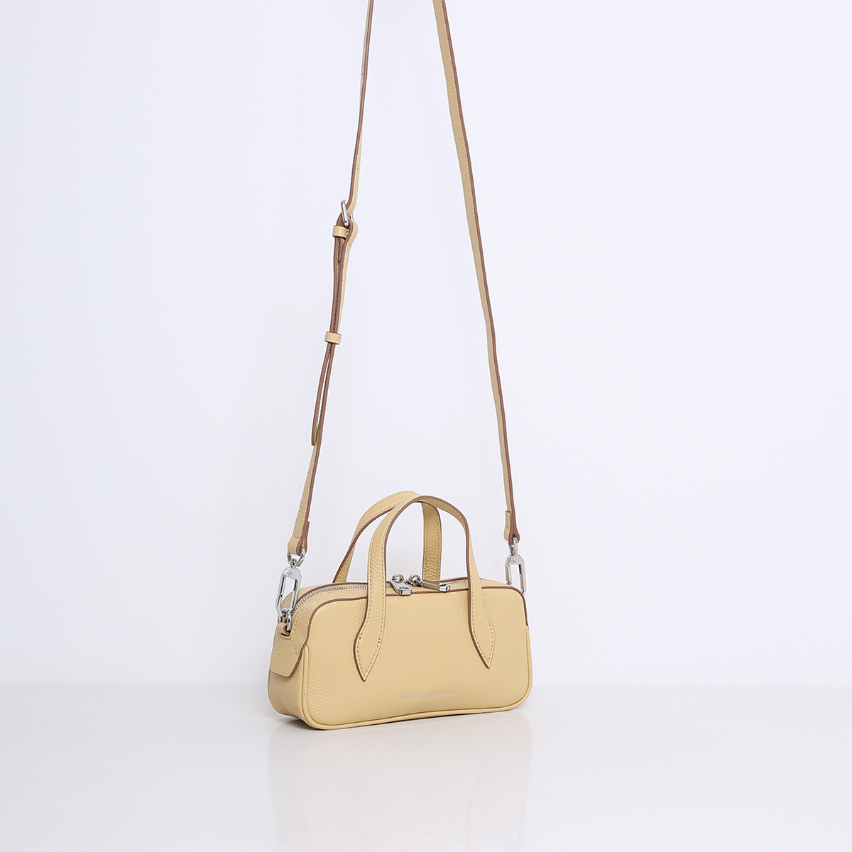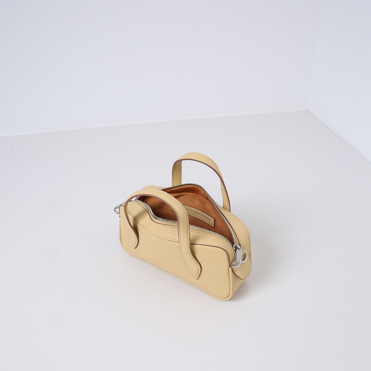 De JAMY is een compacte en elegante mini-handtas met een sterke persoonlijkheid. Het gestructureerde silhouet en de afgeronde hoeken geven deze tas een tijdloze uitstraling, perfect voor wie houdt van een minimalistische stijl met karakter.