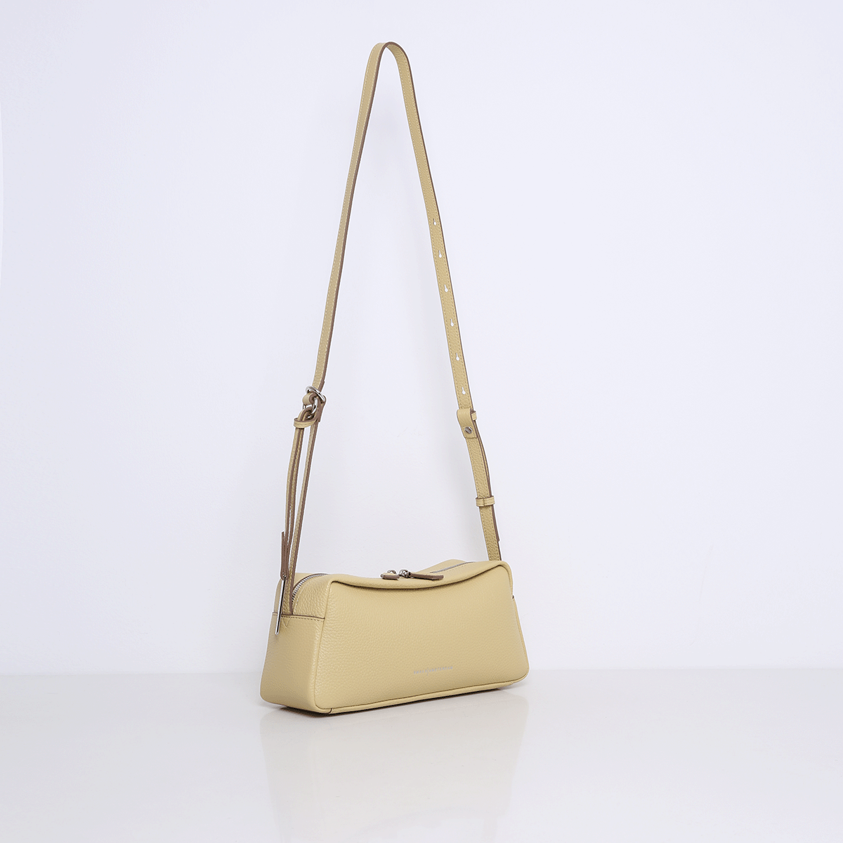 De tas is vervaardigd van hoogwaardig en duurzaam leer met een zachte, maar duidelijk gestructureerde afwerking die zorgt voor een luxe uitstraling. De binnenkant is zorgvuldig afgewerkt met een fijne voering en praktisch ingedeeld, zodat je dagelijkse essentials overzichtelijk en veilig opgeborgen blijven. Er is voldoende ruimte voor items zoals je telefoon, portemonnee, sleutels en andere onmisbare accessoires.