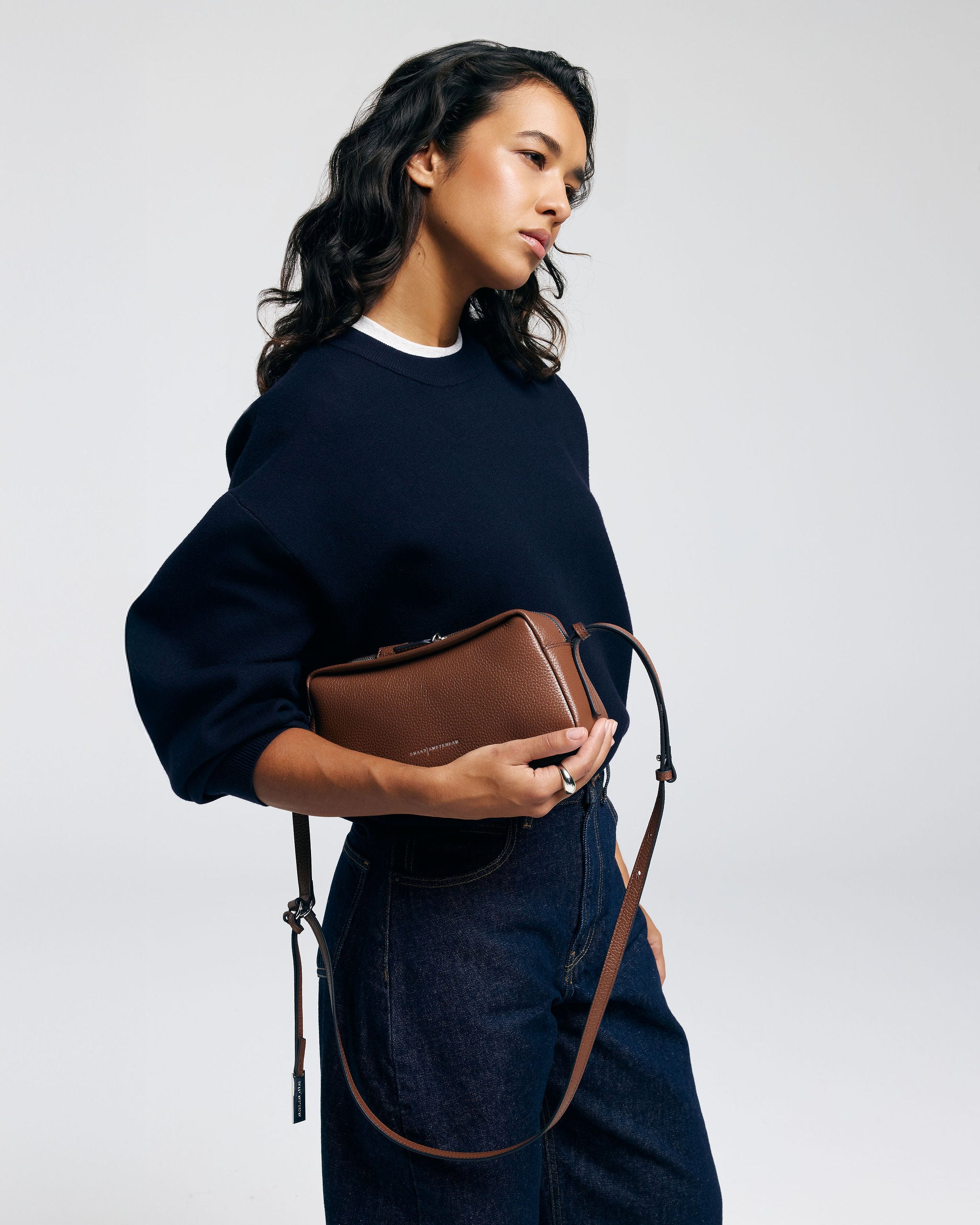 De tas is vervaardigd van hoogwaardig en duurzaam leer met een zachte, maar duidelijk gestructureerde afwerking die zorgt voor een luxe uitstraling. De binnenkant is zorgvuldig afgewerkt met een fijne voering en praktisch ingedeeld, zodat je dagelijkse essentials overzichtelijk en veilig opgeborgen blijven. Er is voldoende ruimte voor items zoals je telefoon, portemonnee, sleutels en andere onmisbare accessoires.