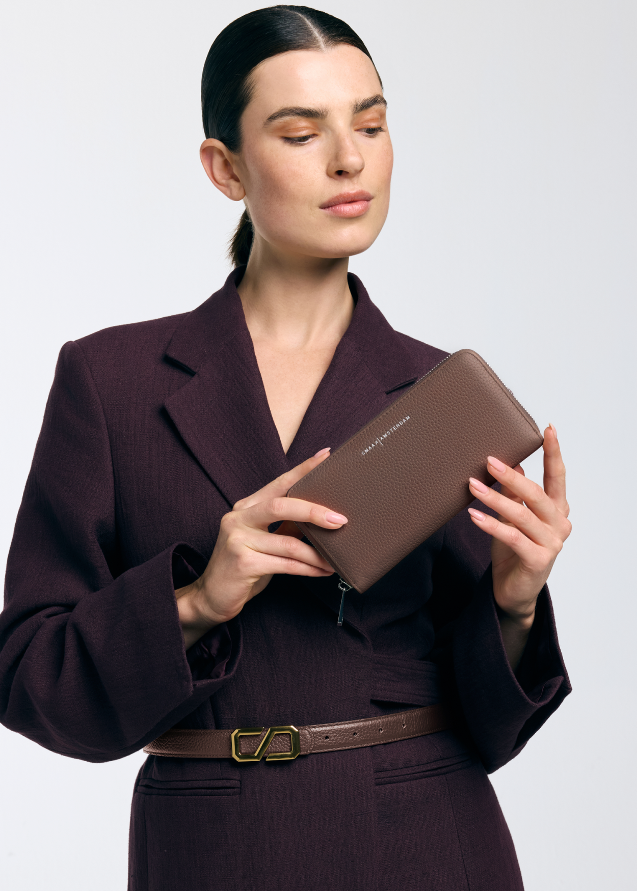 De LUNA biedt de perfecte balans tussen stijl en functionaliteit. Met ruimte voor al je pasjes, bonnetjes, muntgeld en meer, zorgt het strak georganiseerde interieur ervoor dat je altijd overzicht houdt. De verfijnde branding aan de voorzijde en de custom-made rits met subtiel Smaak-logo maken het geheel compleet.