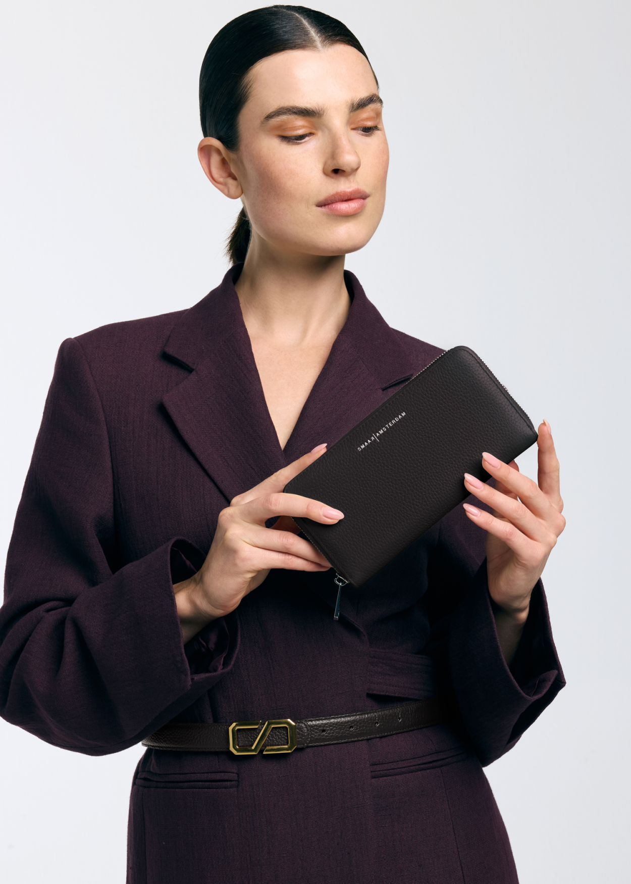 De LUNA biedt de perfecte balans tussen stijl en functionaliteit. Met ruimte voor al je pasjes, bonnetjes, muntgeld en meer, zorgt het strak georganiseerde interieur ervoor dat je altijd overzicht houdt. De verfijnde branding aan de voorzijde en de custom-made rits met subtiel Smaak-logo maken het geheel compleet.