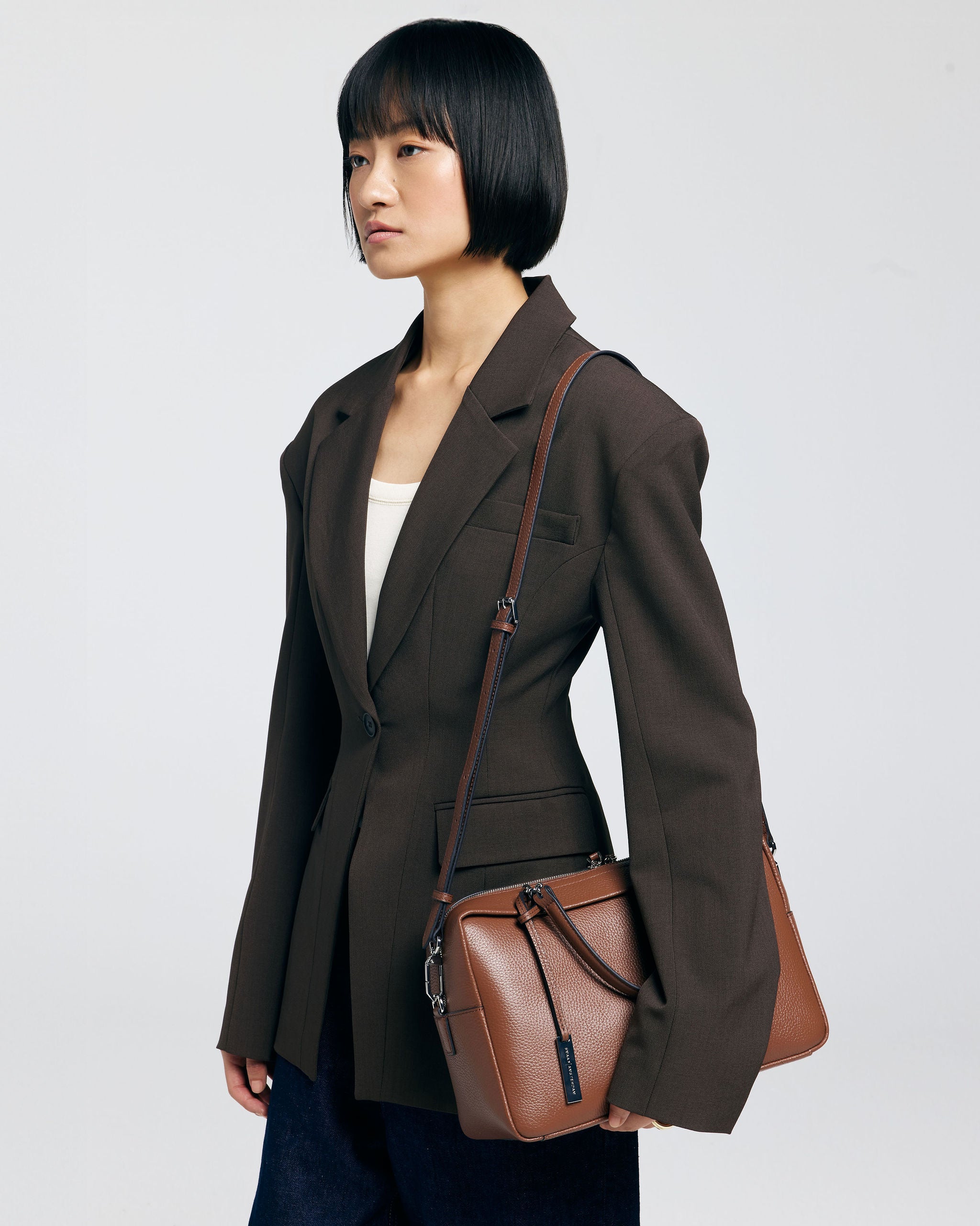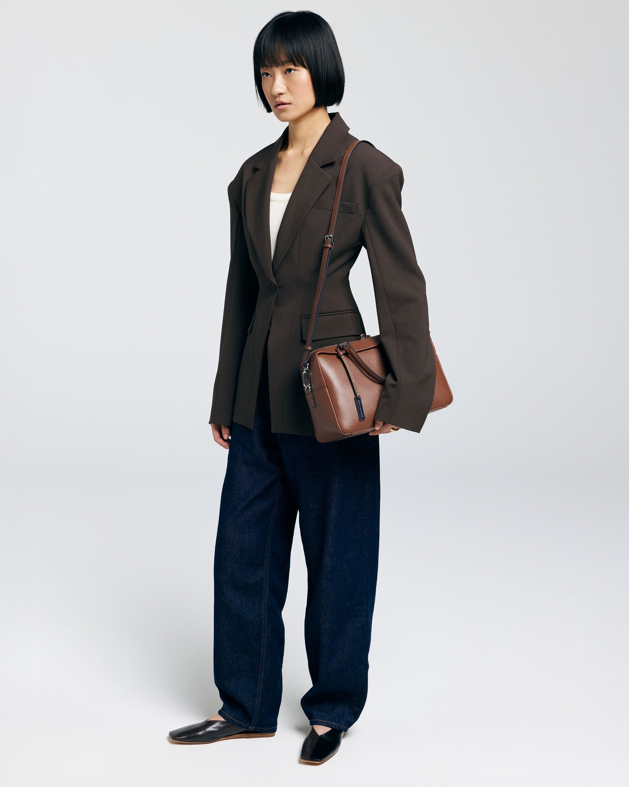 De tas is vervaardigd van hoogwaardig, zacht rundleer en afgewerkt met een subtiel denim accent, wat zorgt voor een luxe maar ontspannen uitstraling. De binnenzijde is volledig gevoerd met viscose en doordacht ingedeeld om je dagelijkse essentials overzichtelijk op te bergen. Dankzij de stevige sluiting blijven je spullen veilig opgeborgen.