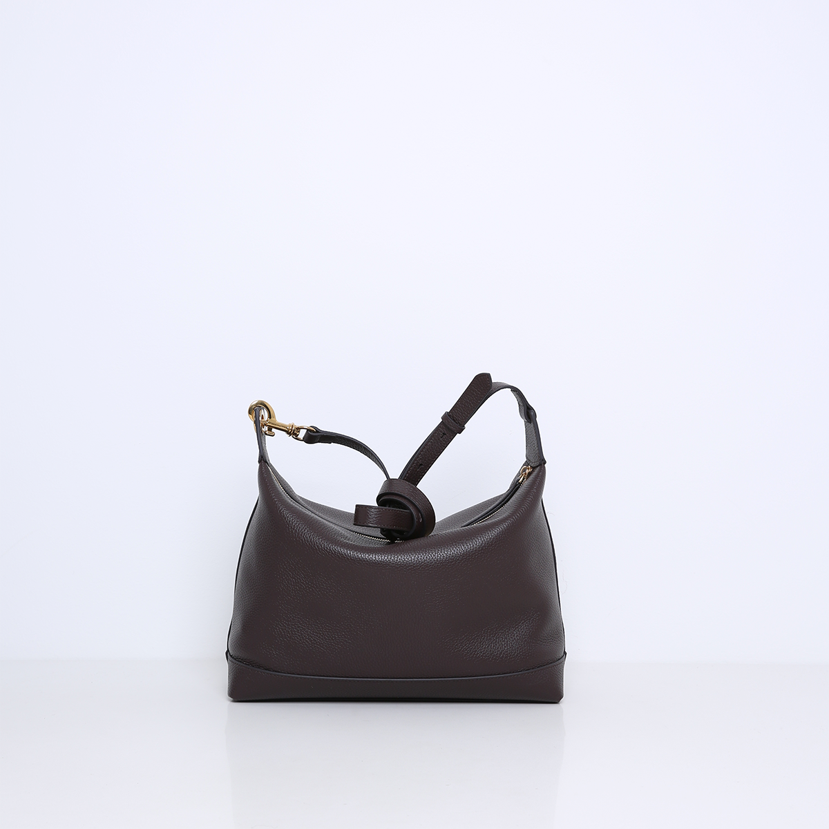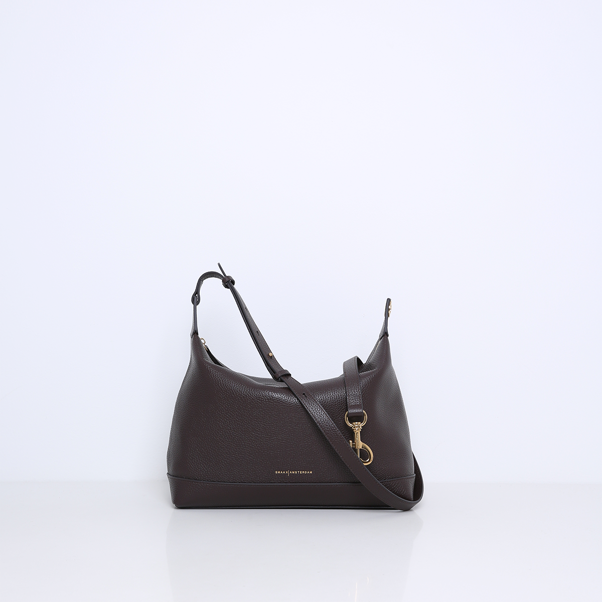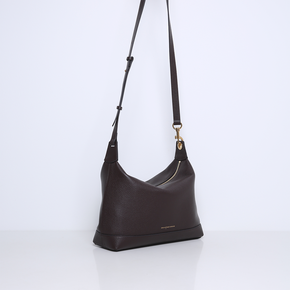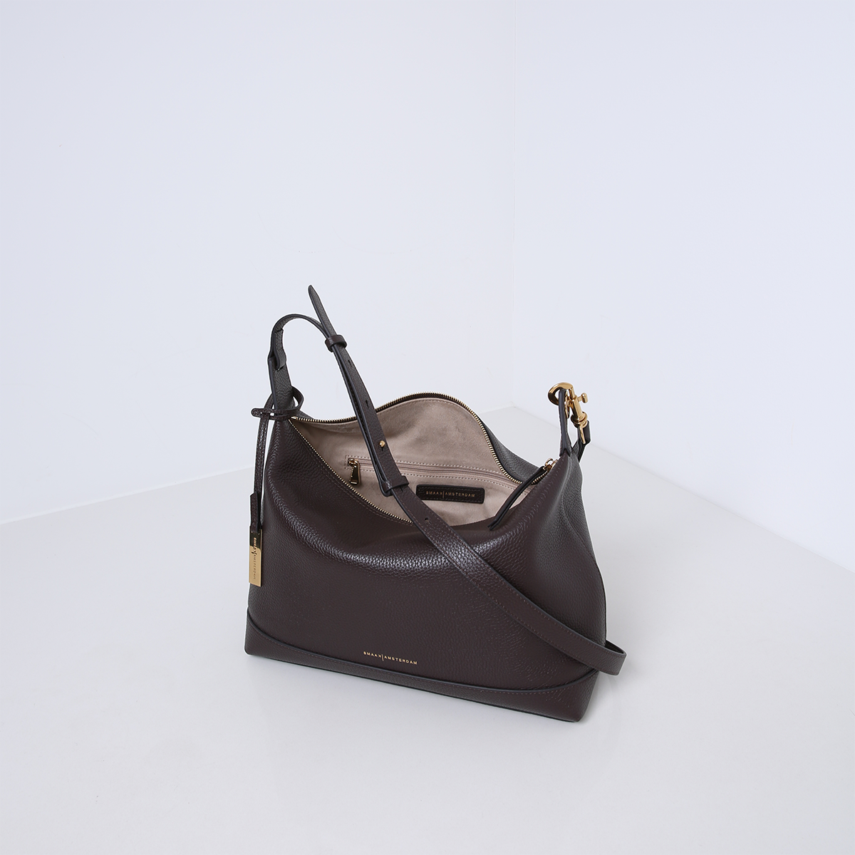 De tas is gemaakt van zacht en soepel rundleer. De rechthoekige basis van de tas zorgt voor stabiliteit en een ruime binnenkant, terwijl de bovenkant afgesloten wordt met een stevige ritssluiting. Deze ritssluiting biedt veiligheid voor je bezittingen, zonder afbreuk te doen aan het strakke en eenvoudige ontwerp van de tas.