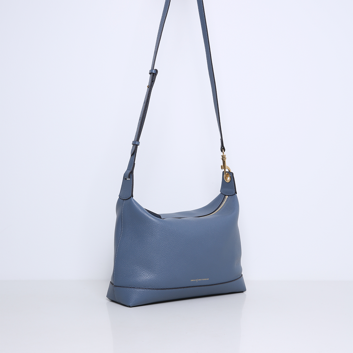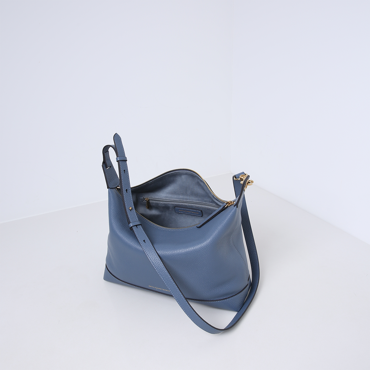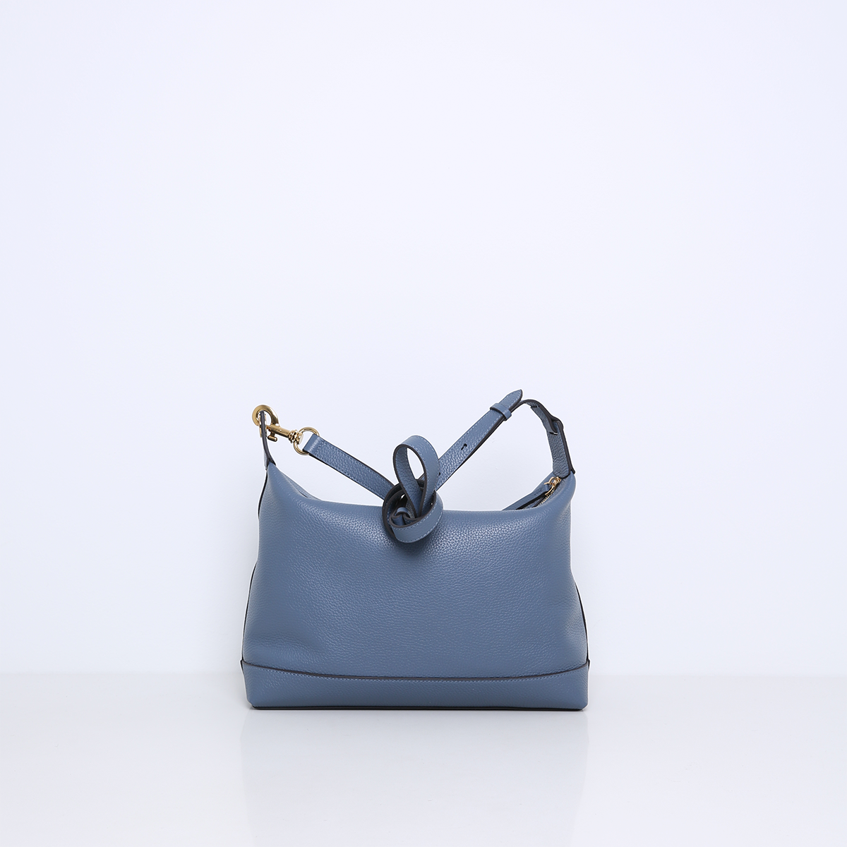 De tas is gemaakt van zacht en soepel rundleer. De rechthoekige basis van de tas zorgt voor stabiliteit en een ruime binnenkant, terwijl de bovenkant afgesloten wordt met een stevige ritssluiting. Deze ritssluiting biedt veiligheid voor je bezittingen, zonder afbreuk te doen aan het strakke en eenvoudige ontwerp van de tas.