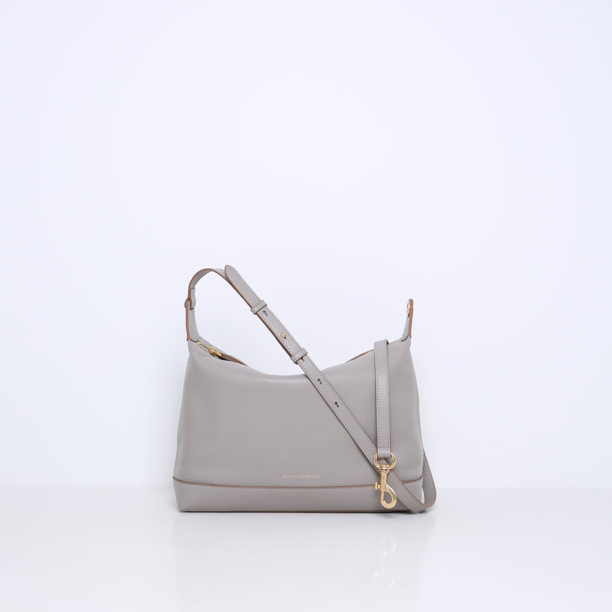 De tas is gemaakt van zacht en soepel rundleer. De rechthoekige basis van de tas zorgt voor stabiliteit en een ruime binnenkant, terwijl de bovenkant afgesloten wordt met een stevige ritssluiting. Deze ritssluiting biedt veiligheid voor je bezittingen, zonder afbreuk te doen aan het strakke en eenvoudige ontwerp van de tas.