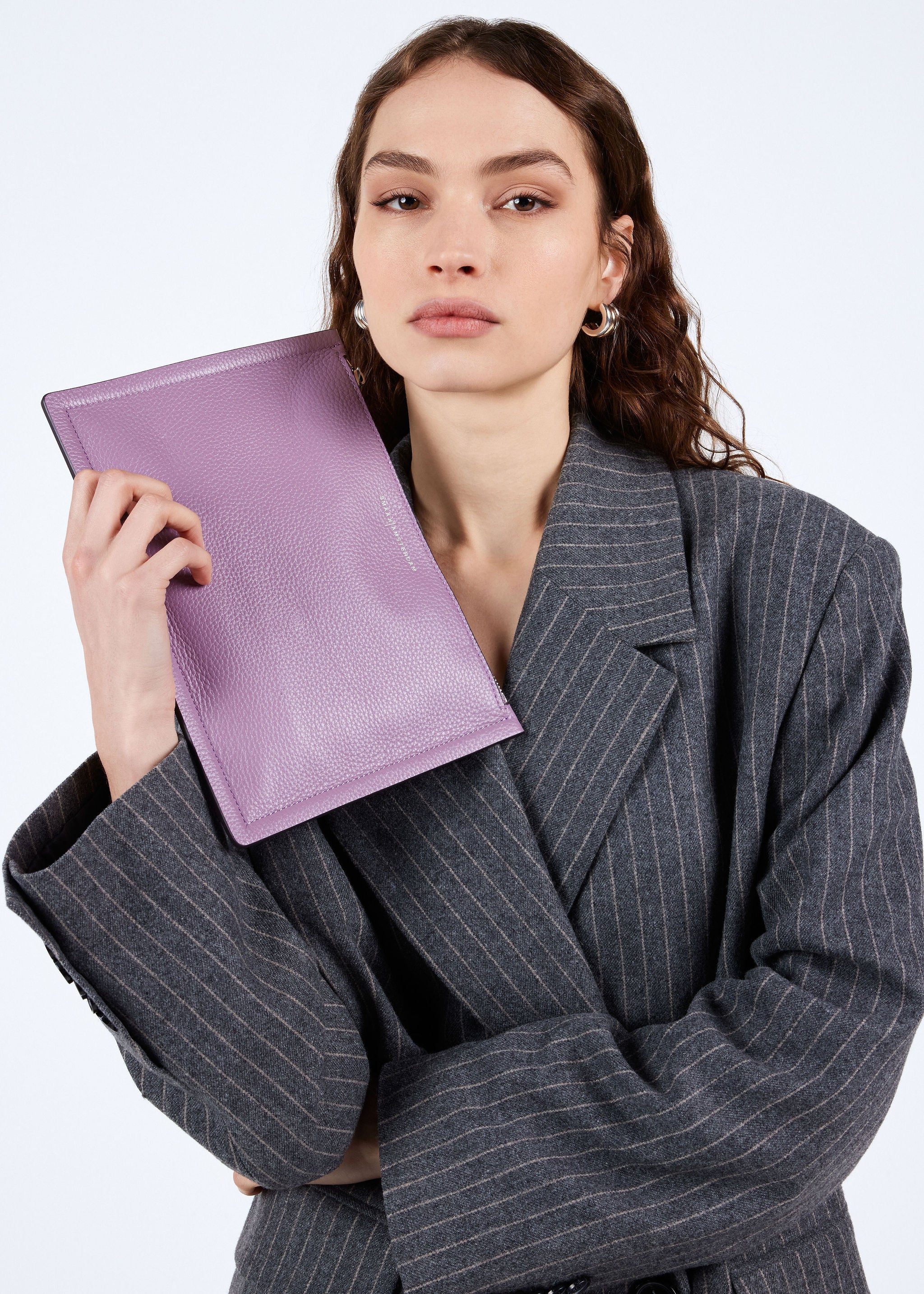 Ontdek onze veelzijdige leren pouch, perfect te gebruiken als clutch of als extra binnentas. Deze stijlvolle pouch heeft geen extra binnenvakjes, waardoor hij heerlijk ruim en eenvoudig blijft. De binnenkant is gevoerd met luxe suedine (viscose) materiaal, wat zorgt voor een zachte touch en extra bescherming van je spullen. De rits aan de bovenkant zorgt ervoor dat alles veilig opgeborgen is. Dankzij het platte ontwerp past deze pouch gemakkelijk in grotere tassen, terwijl hij als clutch een elegante aanvulling is op elke outfit.