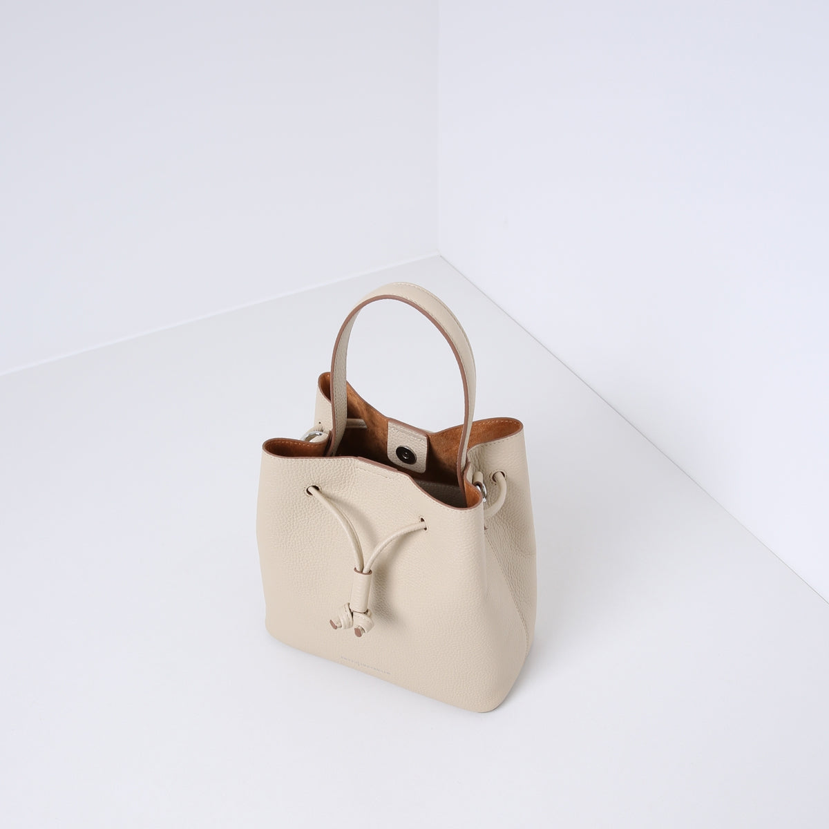 Kenmerkend is het geknoopte trekkoord aan de bovenkant met magneetsluiting aan de binnenkant. Beschikt over een extra uitneembare pouch en is gevoerd met suedine (viscose) materiaal.