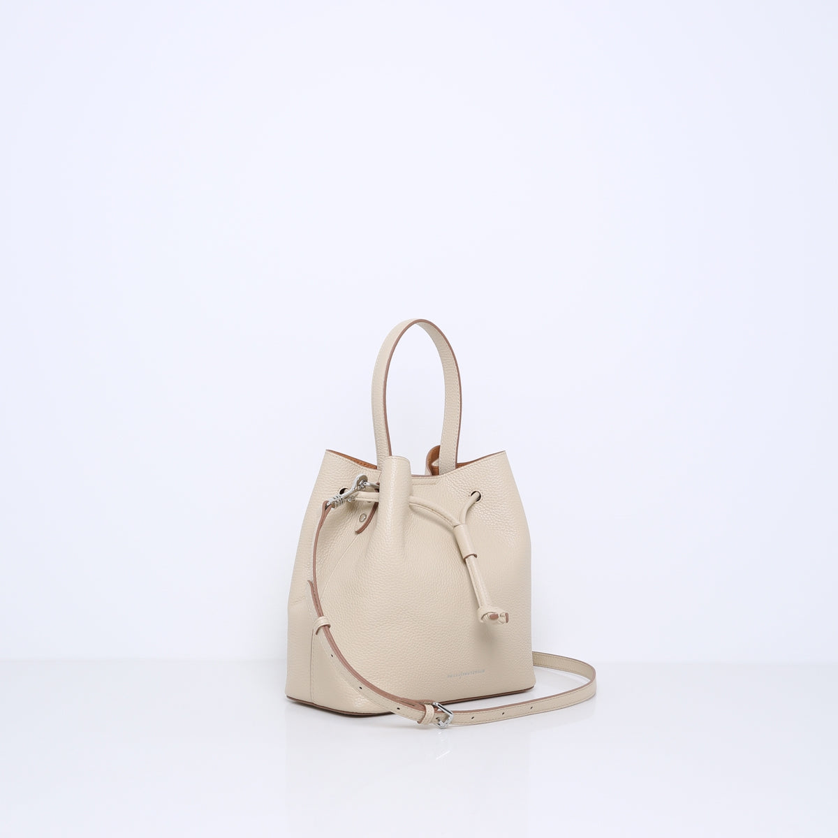 Komt met een korte leren hengsel geschikt om in de hand te dragen en een lang afneembare leren cross-body band verstelbaar tot 130 cm.